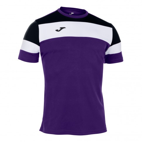 Prezentujemy Państwu koszulkę piłkarską renomowanej hiszpańskiej firmy Joma. Koszulka z kolekcji Crew IV w kolorze fioletowo czarnym z białym pasem na sercu i rękawach.
