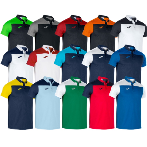Polo, które charakteryzuje kontrast między szyją a przodem w stosunku do części górnej i rękawów. Kołnierzyk zapinany na guziki i haftowane logo.
