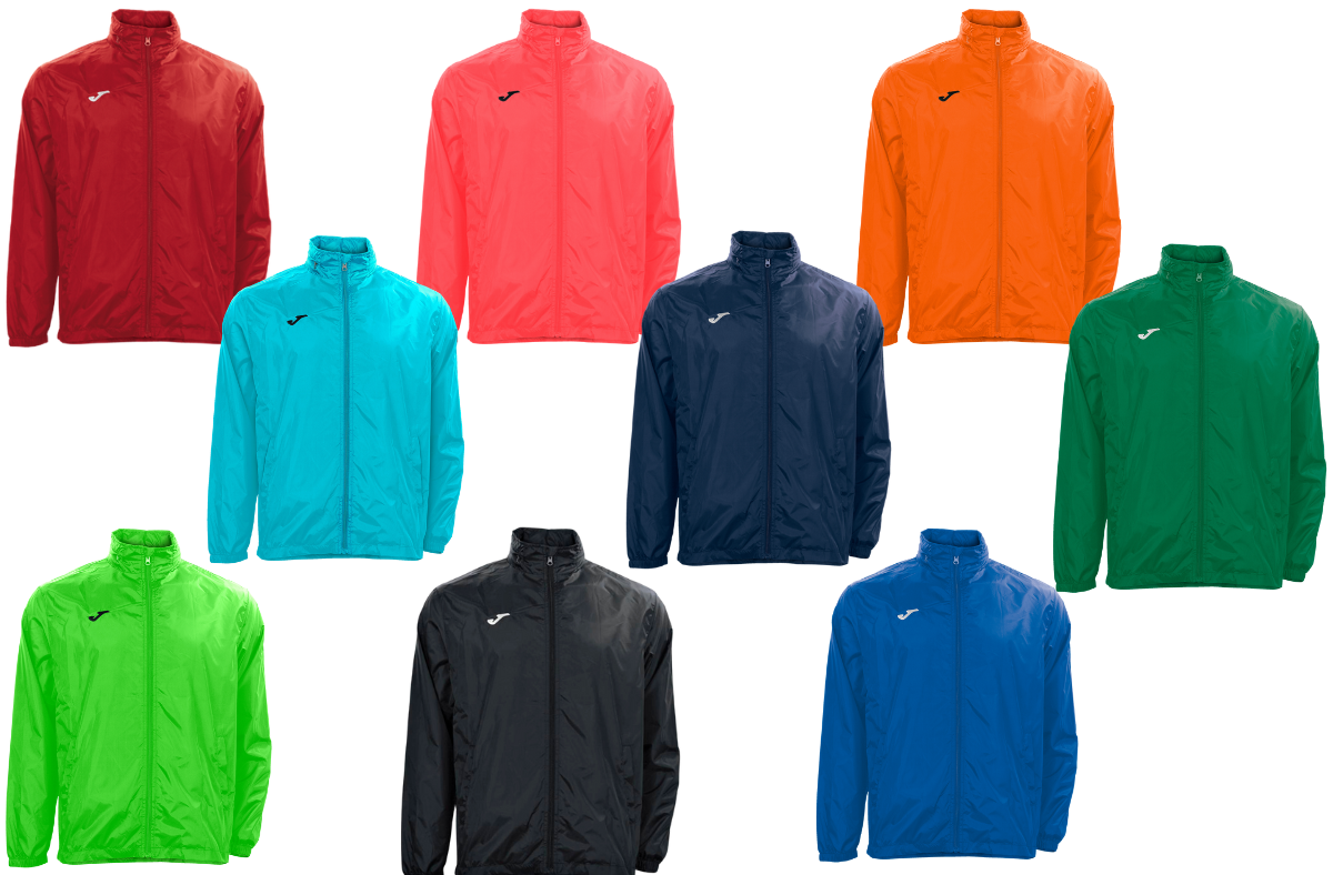 Kurtka męska przeciwdeszczowa przeznaczona do piłki nożnej renomowanej hiszpańskiej marki Joma. Model posiada tradycyjny zamykany zamek, kołnierz ze stójką w której znajduje się kaptur, który można w każdym momencie schować do małej kieszeni.