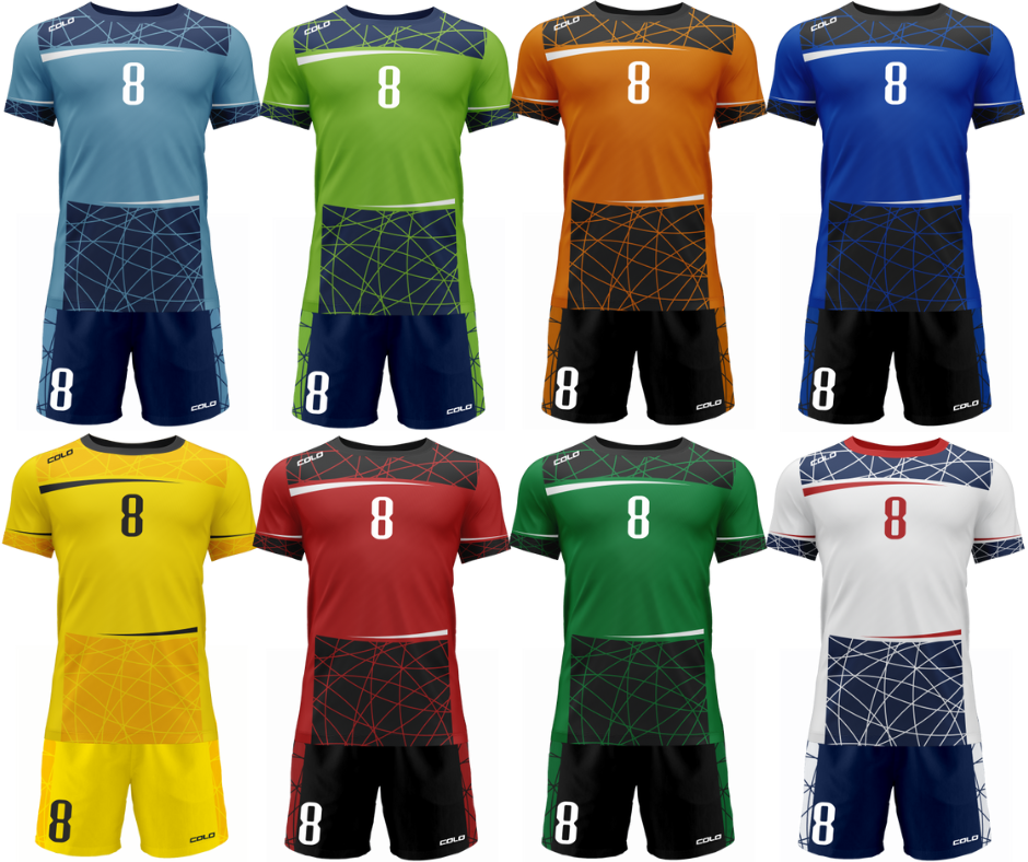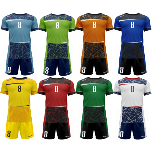 Komplet meczowy, przeznaczony jest na profesjonalne zawody sportowe. Zastosowane technologie oraz materiały gwarantują najwyższą jakość w produkcji odzieży sportowej.